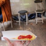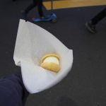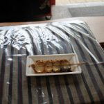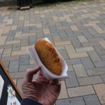 とんぼ玉が冷めるのを待つ間、商店街で食べ歩き。