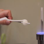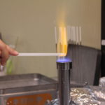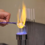 ガラス棒を持つと、火から少し高い場所であぶります。