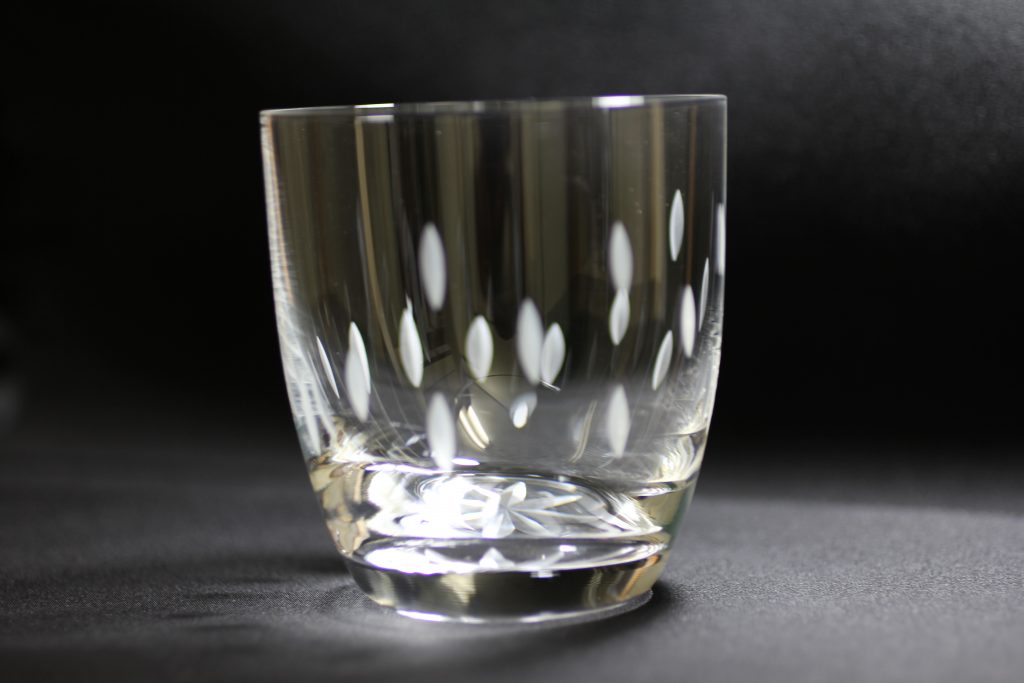 江戸切子のデザインの入れ方は一つで、まっすぐな線を入れることしかできません。
