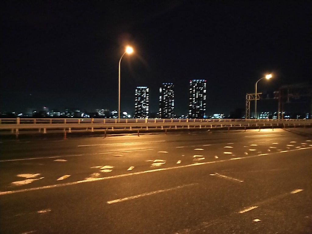 午後5時、レーススタート。まずはレインボーブリッジを渡ります。(レインボーブリッジって徒歩で渡れたんだ……)