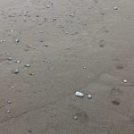 たまに、砂浜が海で分断されている場所があったので、そこは靴を脱いで渡りました。