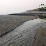 茅ヶ崎のビーチと比べて、大磯のビーチは石がゴロゴロしており、海水浴には向かない模様。