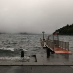 嵐の芦ノ湖に到着