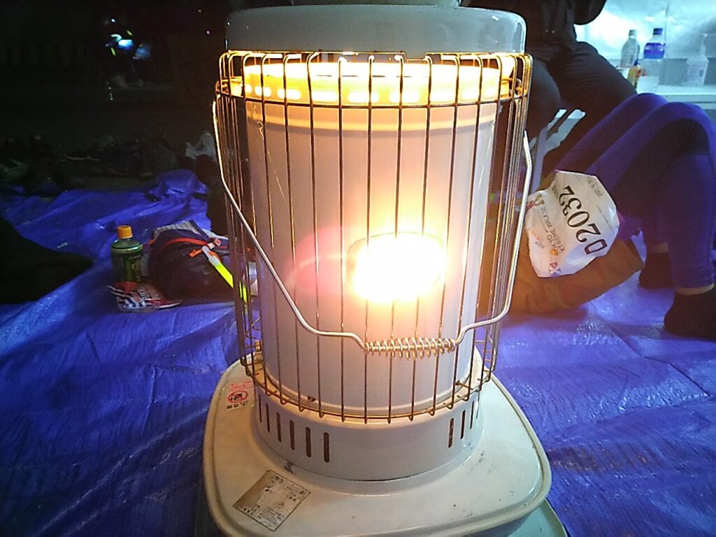 続いて第3エイドステーションの「稲毛神社」に到着。テントに入ると、ストーブのそばで仮眠。