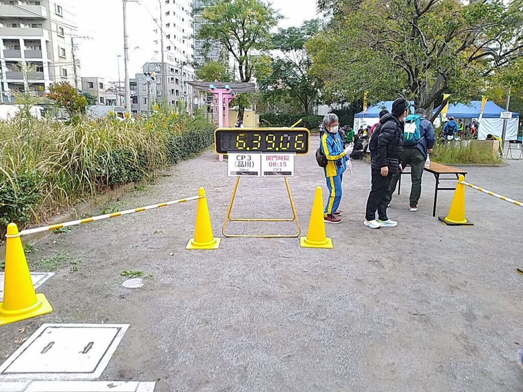 最終チェックポイントの鈴ヶ森道路児童遊園には午前6時40分に到着。ゴールまでの距離はあとわずか12km。よし、これなら余裕をもってゴールできそうだ!